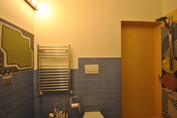 Il bagno è rivestito in ceramiche "Bardelli "e la doccia con ceramiche di "14 ora italiana- I Gattipardi"
