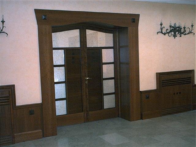 Siamo intervenuti mantenendo il più possibile la struttura esistente conservando e restaurando una cornice di modiglioni classici presenti a reggere il controsoffitto, rivestendo a specchio alcuni pilastri, rifoderando i divani in pelle, rivitalizzando appliques in legno dorato, i banconi del bar, le balaustre in legno e ferro battutto e soprattutto ridando nuova luce al bellissimo e maestoso lampadario in vetro di Murano. Abbiamo inoltre progettato le nuove porte in legno e vetro colorato, le boiserie, i copritermosifoni, organizzato la zona reception, il bar, la sala giochi, gli uffici, i bagni, la palestra e gli spogliatoi.