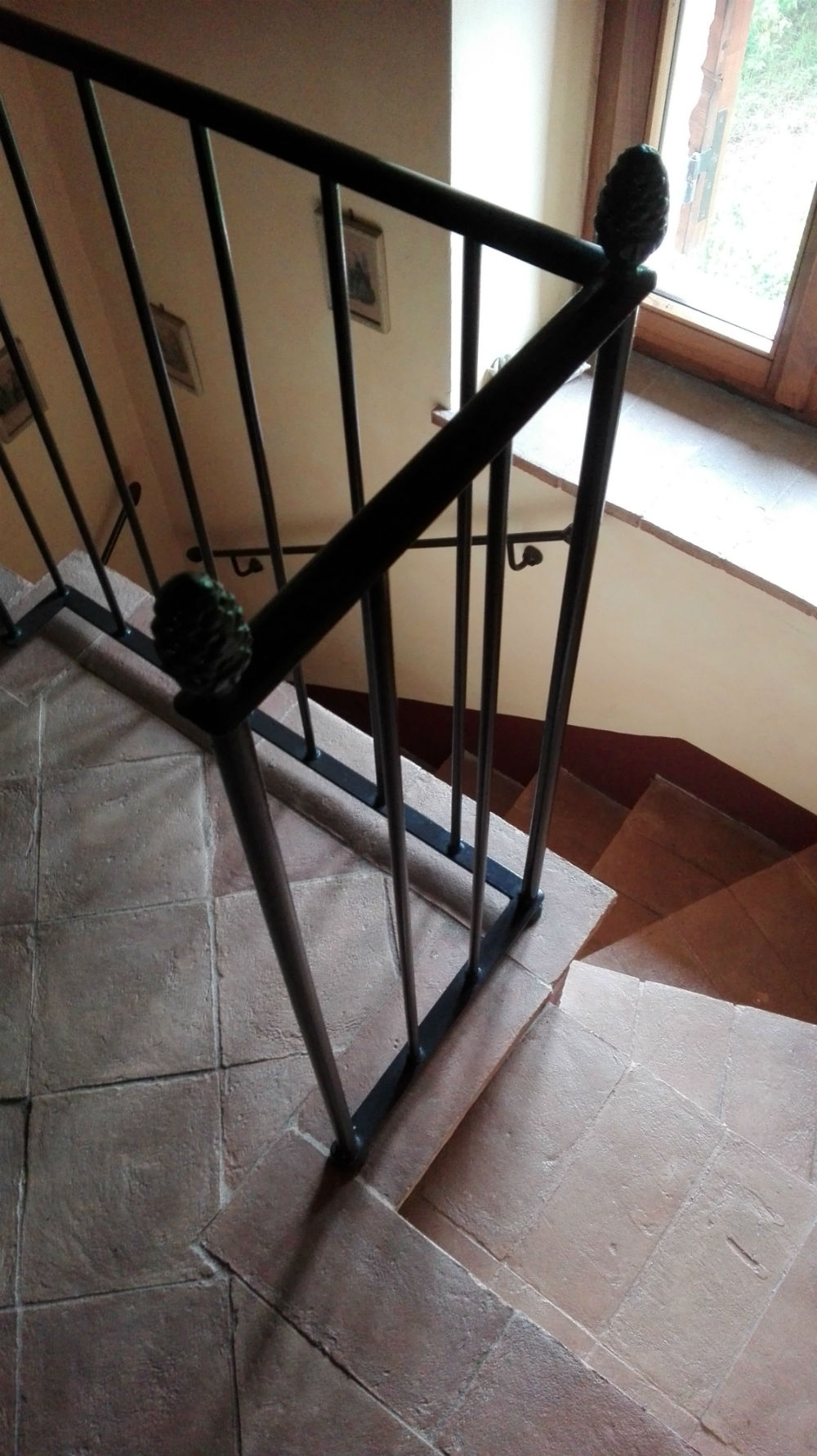 L'elemento caratterizzante dell'edificio è la presenza di due scale poste agli estremi delle stutture, nei due corpi a "torre" che mettono in comunicazione in modo "circolare tutti gli ambienti che a loro volta sono passanti. L'aspetto antico della pietra visibile in facciata si rispecchia negli interni con i tetti in legno di castagno, i pavimenti in cotto fatto a mano di Castel Viscardo e gli antichi mobili di famiglia.
